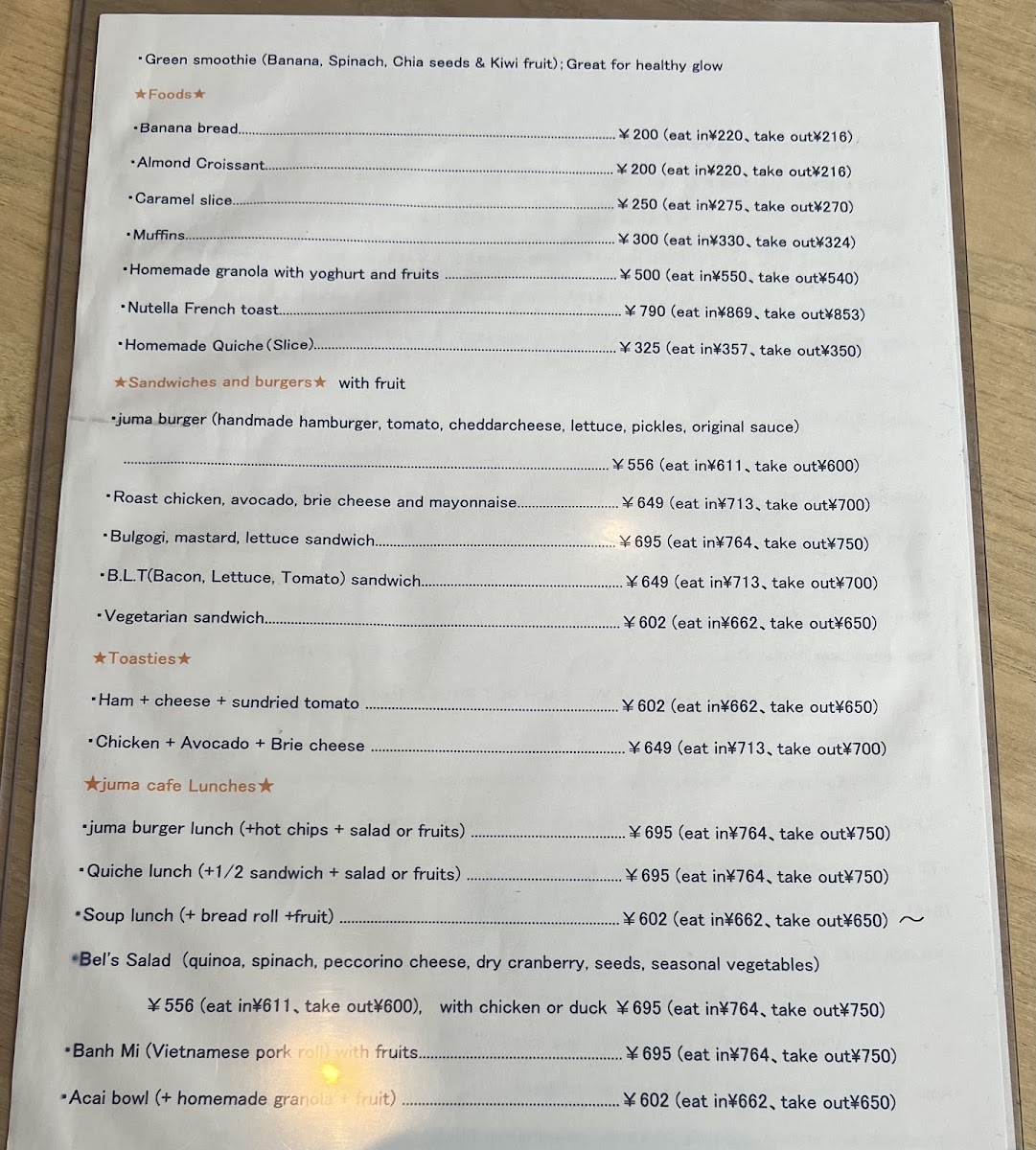juma cafe Menu